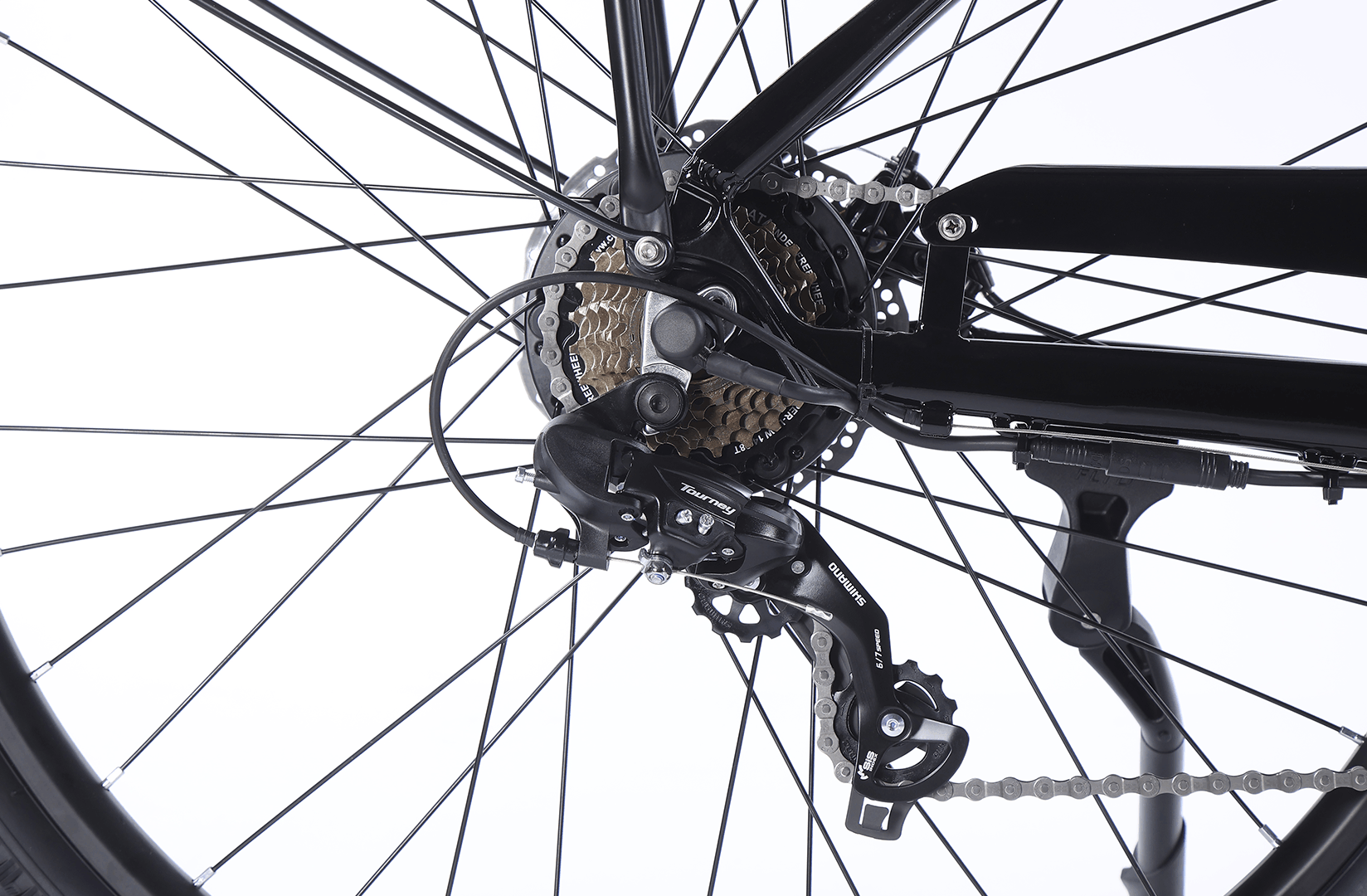 Motor 350 W in baterija 36V10AH omogočata doseg do 60 km, največja hitrost 25 km/h pa je skladna z EU predpisi. SHIMANO 7-stopenjski menjalnik in mehanske disk zavore zagotavljajo natančno in varno vožnjo na različnih terenih.